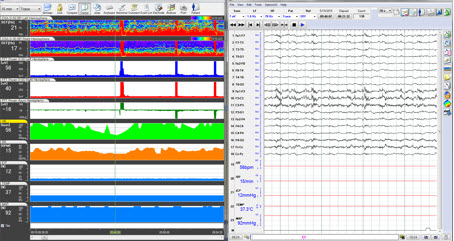- Trend relationships between real-time EEG changes and vital sign monitor data such as HR, SpO2, and EtCO2 along with other DC parameters for multimodality monitoring